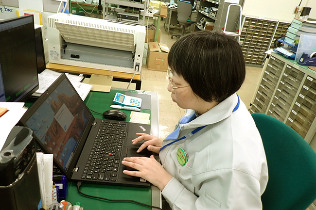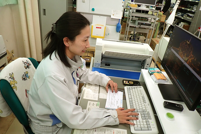 受注から出荷までスムーズに生産できるよう生産計画・在庫確認などを行っています。細部まで気に掛け、社内外の調整役として意思疎通をこまめに行い大変だと感じることもありますが、日々達成感を感じながら取り組んでいます。